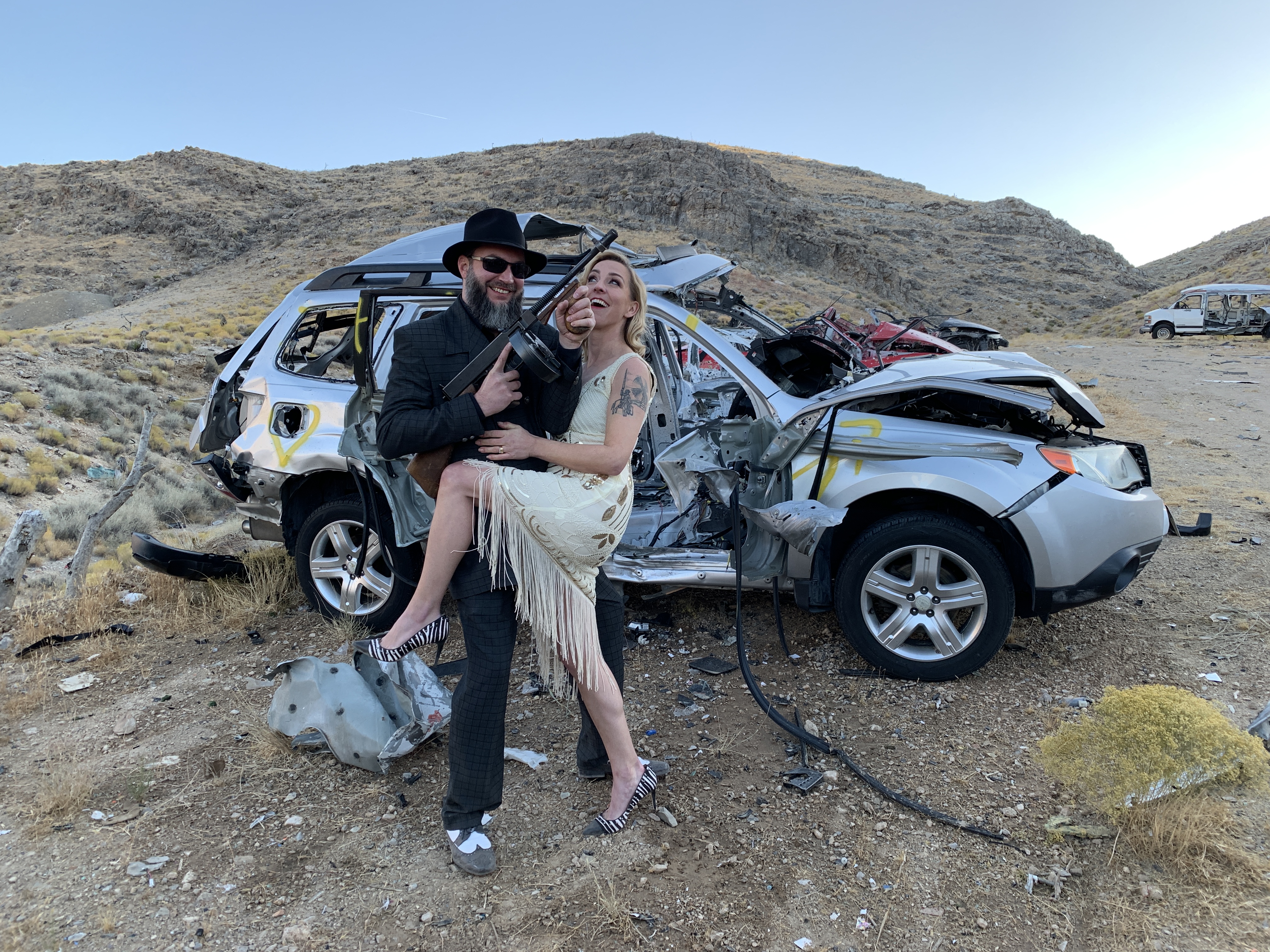 Like our bride and groom, who both shot sniper rifles to simultaneously blow up a car together. While each member of their wedding party shot a full-auto and sniper rifles of their own. They ended up taking home a not-so-small souvenir of the car door that they blew up together, which they now display proudly in their home. An unforgettable way to tie the knot!