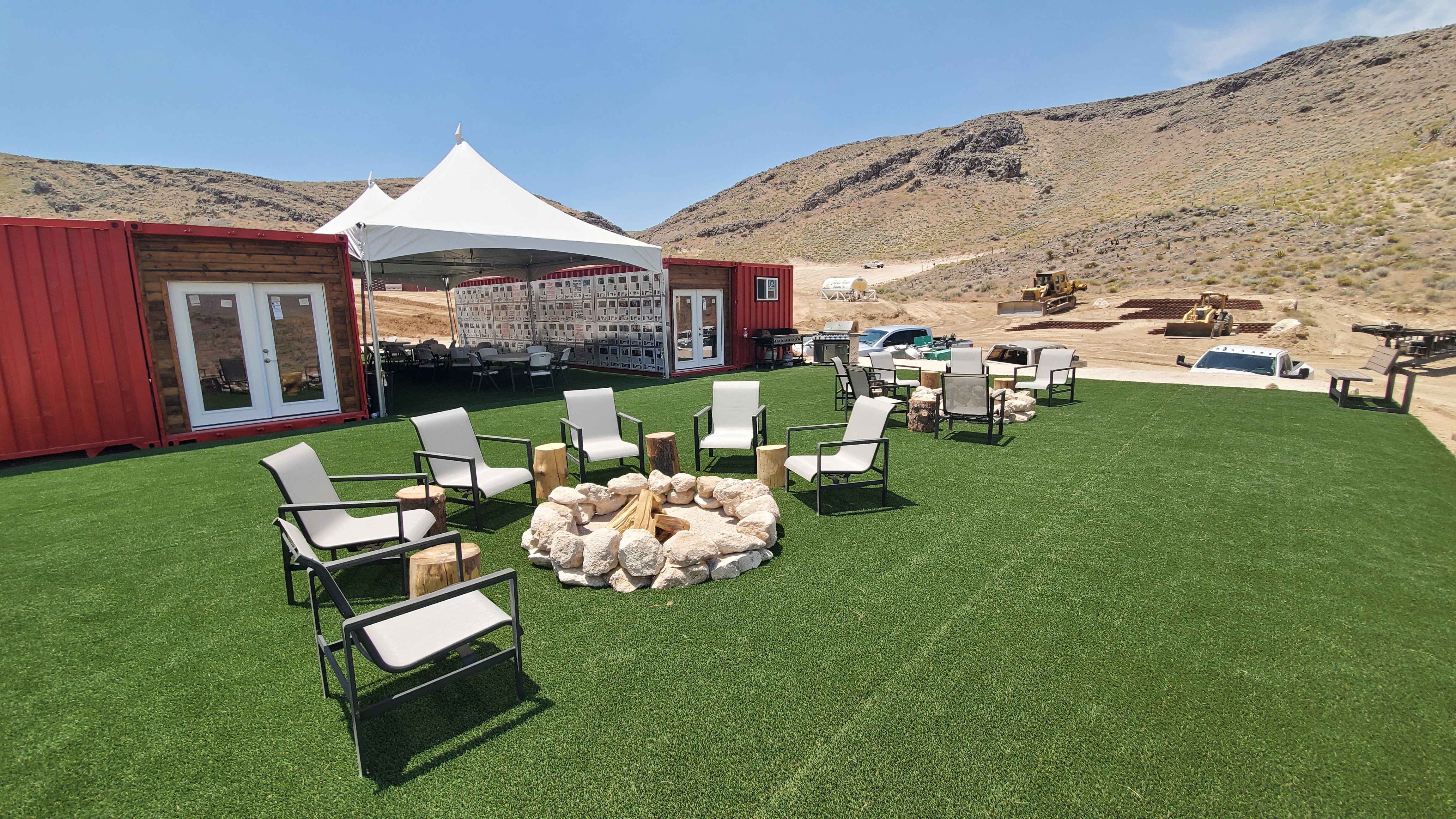 Adrenaline Mountain has fire pits in the winter. We even offer guests loaner winter wear for off-roading. In the summer, we have shaded areas to keep guests comfortable. Adrenaline Mountain is also 10 degrees cooler than the strip due to our elevation. There is a lounge guests can use that is climate-controlled, which has restrooms, furniture, and satellite TV. There is a registration building guests can use that is climate-controlled, which also has a restroom.